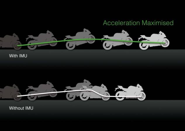 IMU(慣性測量器)提供了五個測量參數, 並通過ECU 計算處理引擎轉速,油門開度位置,滑動程度,加速,參考這些數據
