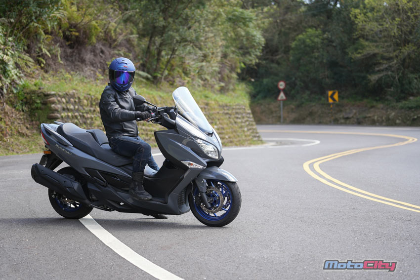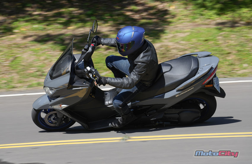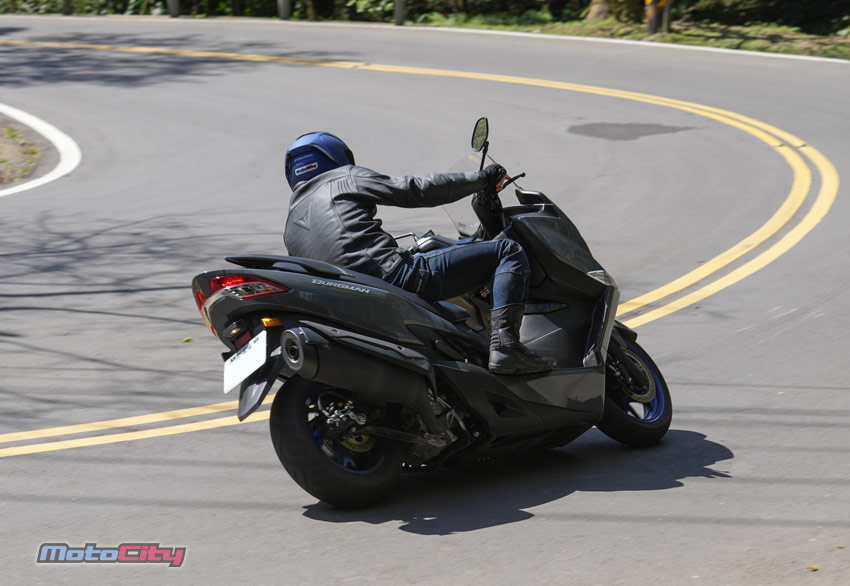 相反的.BURGMAN 400在彎道中穩定性相當優異