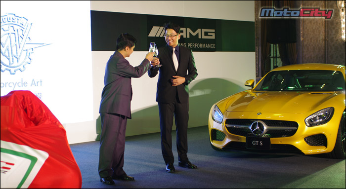 台明賓士代表與MV AGUSTA台灣黃總經理一同舉杯祝賀 Mercdes-AMG與MV