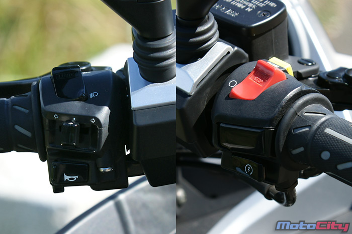 右手把開關.備有引擎開關、啟動鍵、警示燈