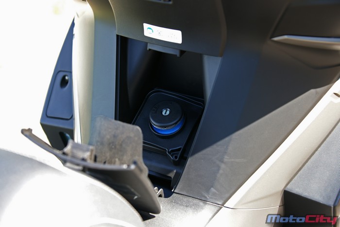 手把的左側有一個小型置物盒 可放置手套...等隨身小物品.內有12V的充電座