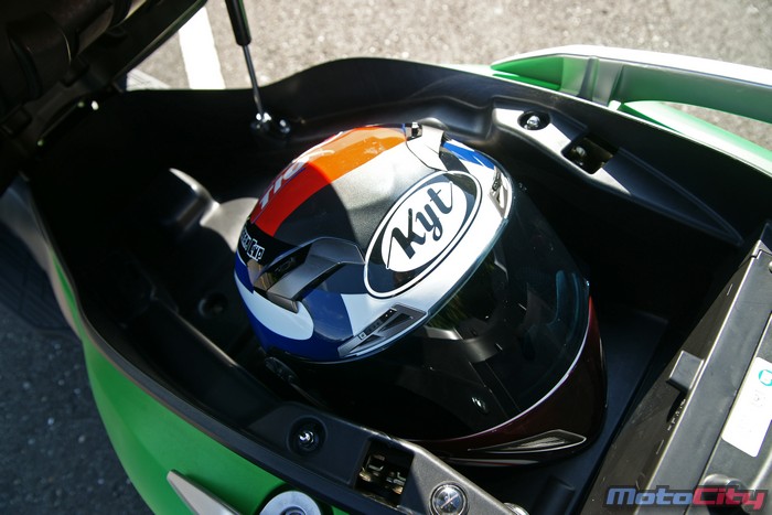 行李箱的空間.可放下一頂全罩安全帽之外.還有不少的空間可放隨身的行李 此外.行李箱中也有貼心的照明燈設計