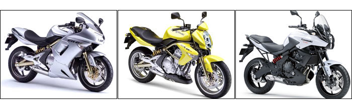 ER-6f.與多功能車款Versys 650. 三款車種走完全不同的騎乘方向設計.以標準版ER-6n為例