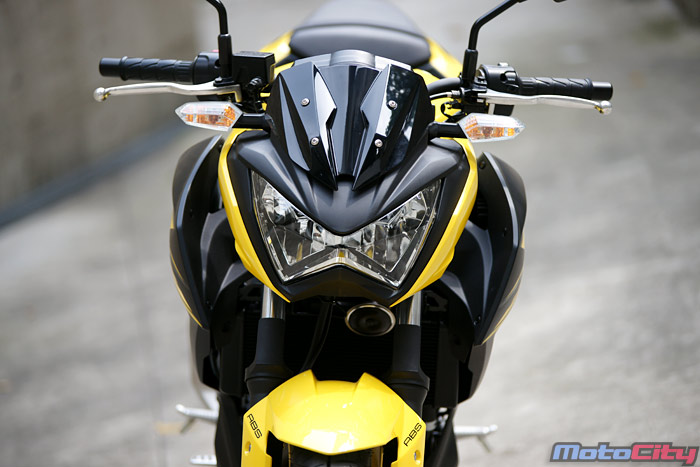 這款極富殺氣的車頭設計與Z300的二哥Z800非常相似.但加大的墨色風鏡 這讓高速騎乘時的導風效果更優異