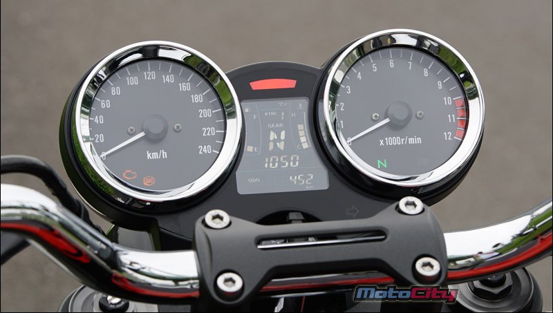 只不過新世代的z900RS已經進化為LED燈系..另外兩顆指針表間.