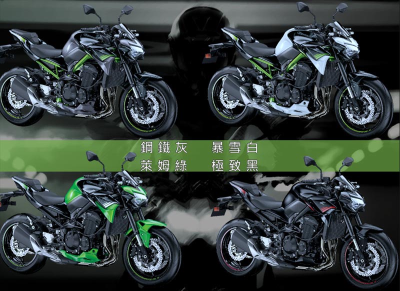 由台崎引進的2020年式Z900.將提供四種花色讓車主選購 分別是鋼鐵輝.暴雪白.萊姆綠與極致黑.四色