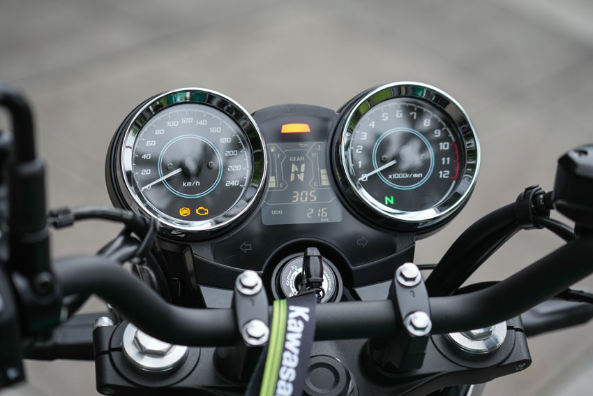 另外值得一提.包含轉速與時速表.z650RS採用的是類比的指針儀表.