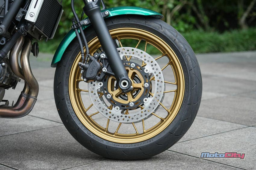 在底盤部分.z650RS使用17吋輪框.採120前輪.41芯傳統正叉