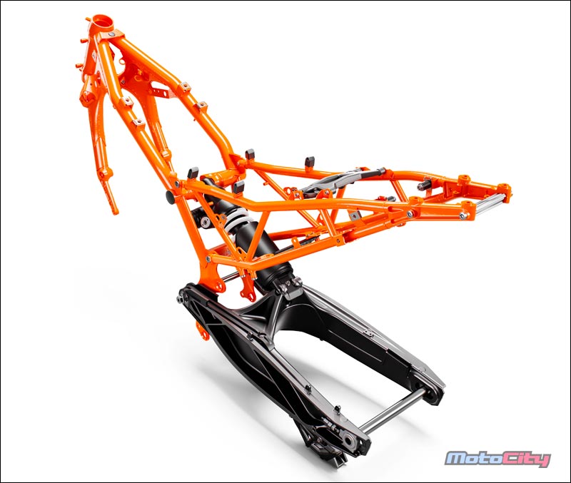 工程師選擇用輕量合金鋼管車架來製造,達到高剛性的前提與理想的重量控制,