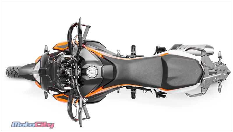 車身設計為了符合用途採用瘦長的方式,讓騎士能夠輕鬆的採取立姿通過越野路段,