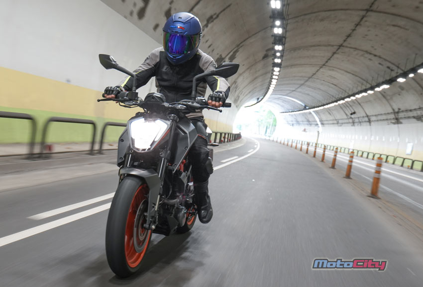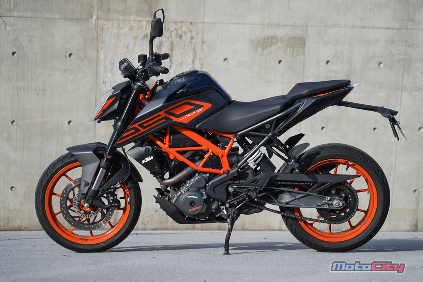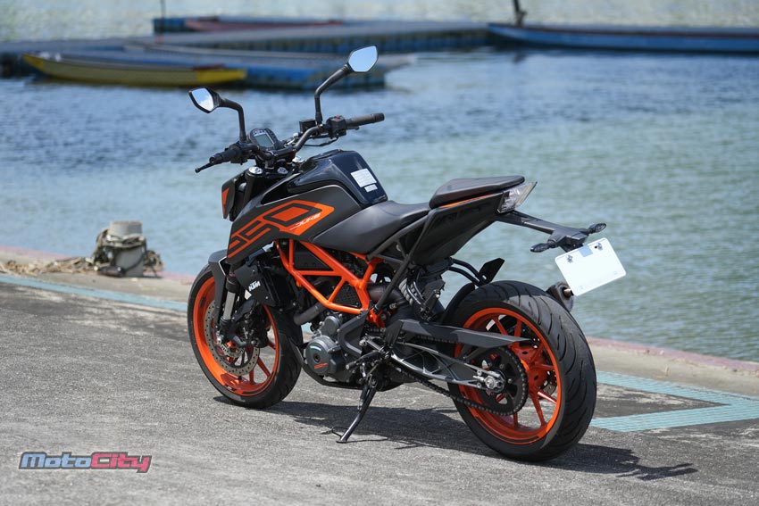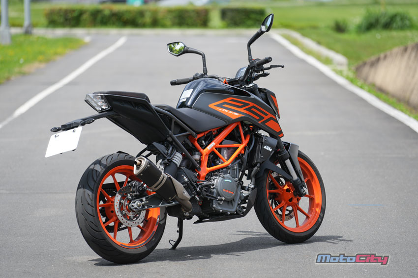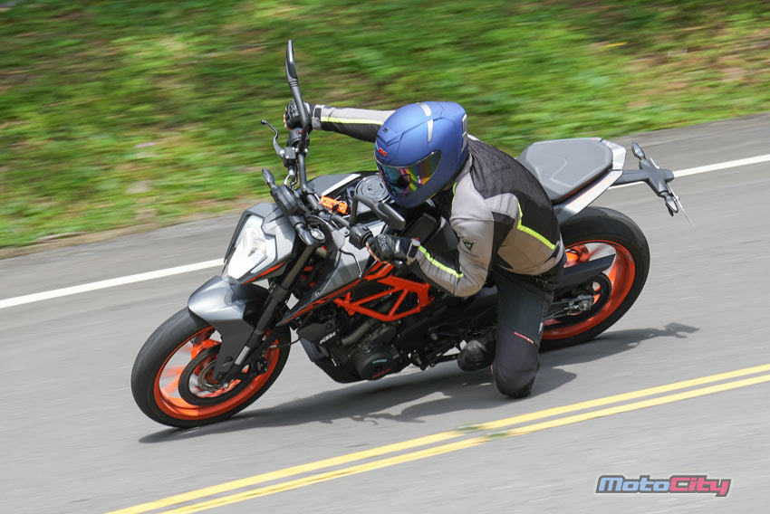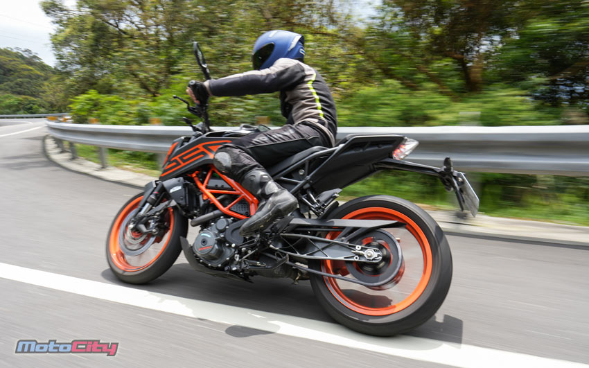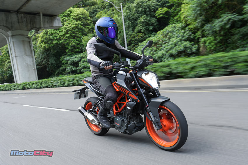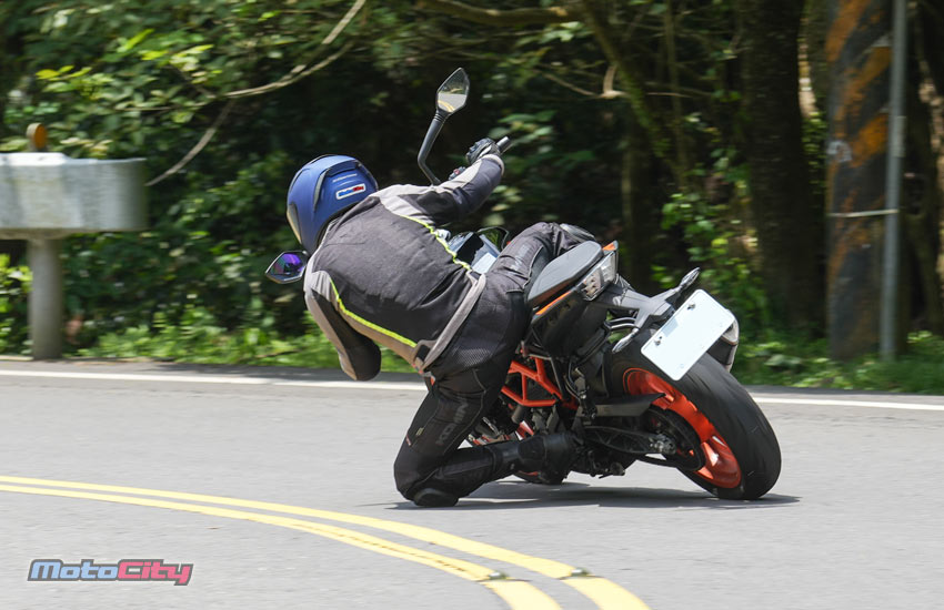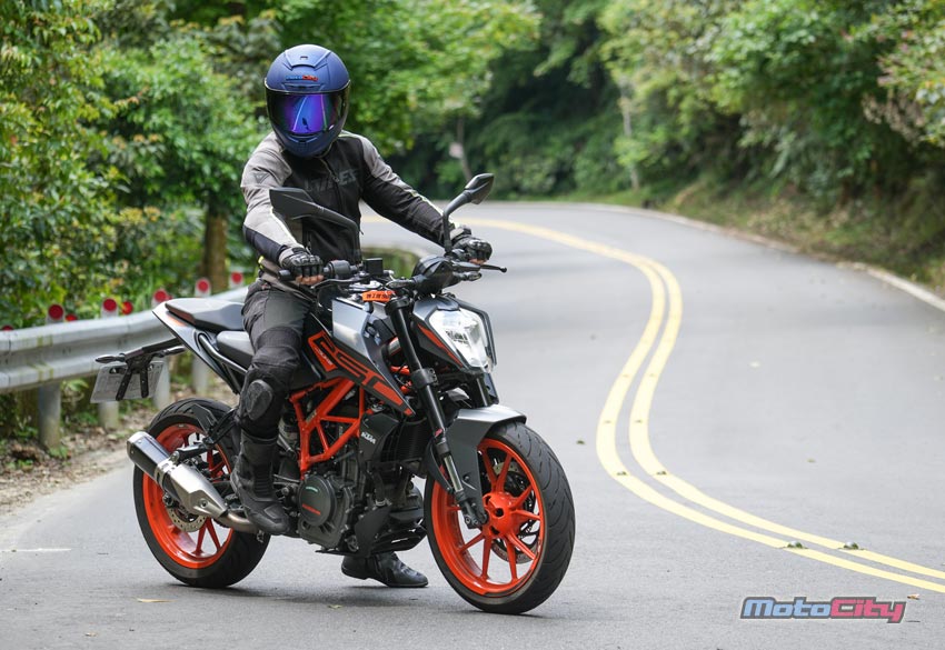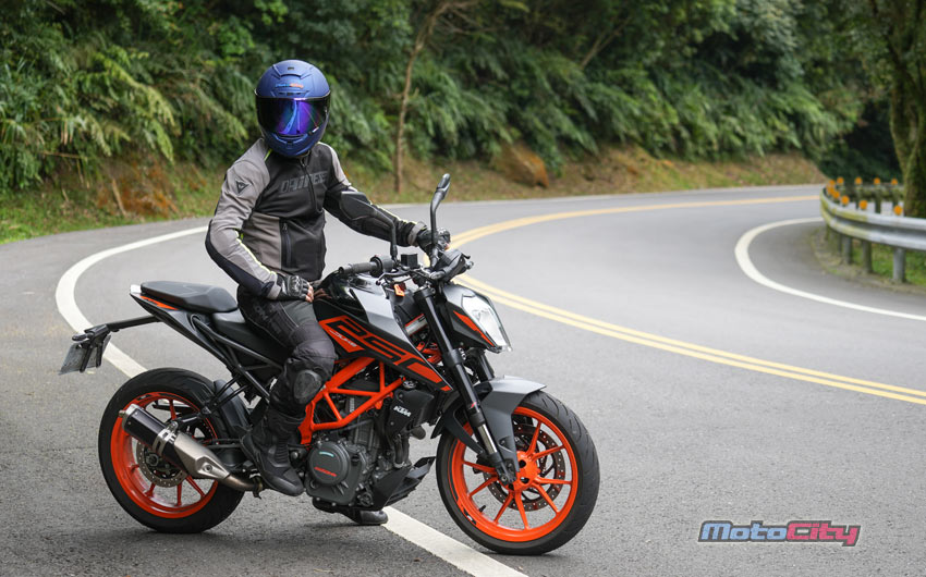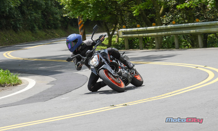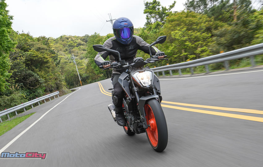 KTM這家在奧地利誕生的摩托車廠 創立於上個世紀的1934年 在初期.這家公司並不是以製造摩托車為主業 而是一間小規模的金屬零件的加工廠 一直到經營了20年後. KTM才發表了第一款市售摩托車-R100 當時這家車廠只有20名員工.而每天只能製造3輛摩托車. 雖然規模小.卻有著明確的經營方向.從推出第一部量產車開始 KTM設計的車.就以輕量化車身與粗壯的底盤懸吊做為賣點. 這也讓這家車廠所推出的摩托車.比起其他車廠 更適合在沙土泥濘的地形騎乘使用 因此造就了KTM摩托車在2輪運動冒險領域的領導地位 時至今日.這家車廠幾乎是林道越野車的代名詞 一直到1994年.KTM車廠才開始注意到地球上原來有柏油路面的存在 因此推出了首款街道專用摩托車-620 DUKE. 雖然號稱運動街車.但實際上也就是一部裝了街車燈罩 並且將輪框改為17吋的純種越野車. 直到2005年.推出了990 Super Duke KTM才實質的開發出完全符合街道使用的摩托車 新車的造型特立獨行.猶如隱形戰機的菱角設計非常吸睛 184公斤的重量搭配120匹的馬力讓動力非常狂暴. 結合了帥氣的造型與優異的性能 讓這部運動街車在全球締造出極高的口碑與銷售表現 找到流量密碼的KTM車廠.也決定讓DUKE的宇宙得以延續. 直到如今.DUKE可以算是KTM車廠的主力車款系列 從最小排氣量的125.到極致暴力的1290 各種排氣量一應俱全.任君選擇. 由於車系眾多.因此車迷在準備入手一部DUKE時. 看到大大小小一字排開的車陣.可能會出現選擇焦慮的症狀. 簡單來說.. DUKE大致區分單汽缸輕量級與雙汽缸重量級兩個方向 單汽缸的DUKE以白牌與黃牌級距為主.騎感輕鬆但動力充沛 適合檔車新手或玩樂與通勤兼顧的騎士選購 而雙汽缸的DUKE排氣量皆為紅牌級距. 性能較狂暴.配備較頂級.但騎乘挑戰性也較高 比較適合熱血玩家入手. 無論是何種版本的DUKE.他們都有一個共通點 就是底盤扎實.造型帥氣.絕對可以讓玩家騎的很開心 而本次重車論壇試車報告的主角250 DUKE 為單汽缸系列的中間分子 .比起125 DUKE 有更好的動力表現.比起390 DUKE.卻有著更輕巧的操控性 這樣的級距.能帶給騎士什麼樣的騎乘感受 透過本次試車報告.就讓我們帶大家一探究竟. 造型 無論是125.390或本次的250 DUKE 事實上都共用相同的外觀模組 這樣的銷售邏輯.類似於歐系的汽車廠 也就是同樣的外觀下.植入不同的排氣量與配備 讓客戶可依照預算與騎乘需求做選擇. 承襲了新世代家族造型 讓這部2022年式的250 DUKE外表看起來非常具侵略性 向下延伸的頭燈搭配上揚的車尾. 透過前低後翹的設計語言 讓整部車有如蓄勢待發的橘色猛虎.相當動感. 另外油箱兩邊的寬體側罩.向前延伸到水箱上方 造型簡約卻非常霸氣.除了視覺美感 還能在車輛行進時提供穩定車身的導流效果. 從車頭看過去 整車外觀輪廓採菱角設計.在以尖銳的煞車燈作收尾 有別於日系車一貫的渾圓流線外觀 造型確實獨樹一格.也讓這部新車更具獨特性 250 DUKE的另一個賣點.就是配備了鋼管桁架車台 包含了坐墊下方的副車架也是相同配置 既經典好看.同時能提供高剛性的動態表現 眼看隔壁棚新世代DUCATI Monster換上了全新的鋁合金架構 桁架車台似乎已經成為KTM DUKE的招牌靈魂. 配備與規格 2022年式KTM 250 DUKE 搭載了一具水冷單汽缸DOHC四汽門引擎 中高轉速的設定能在9千轉時爆發30匹馬力 並於7250轉提供24牛頓米的扭力 變速方式採鍊條六速傳動.並提供PASC滑動式省力離合器 讓換檔更輕鬆.有效大幅降低退檔時的頓挫. 在制動方面.前煞車為300厘米單碟搭配BYBLE四活塞輻射卡鉗 後輪為230厘米碟盤搭配單向單活塞浮動卡鉗 底盤皆使用懸吊大廠WP製品.前叉為43mm倒立式運動避震. 後輪使用中置單槍.預載可調避震. 從技術規格上看來.這確實是一部重視操控表現的運動車 跨上這部車.接著我們實際體驗250 DUKE的騎乘感受 騎乘 2022年式KTM 250 DUKE採線條硬派的菱角設計 因此實際看起來.比一般的白牌擋車都要來的大般(台語) 實際跨上這部車.會發現雖然KTM車廠替這部車配置了薄型的坐墊 但830mm的座高.依舊比其他車廠推出的輕檔車.還要來的高一截 身高170左右的騎士.需要踮腳尖才能兩腳著地駐車 但這應該已經是KTM現役的銷售車款中.座墊高度算相當低的一款車型了 不知道是不是奧地人普遍都跟甘道夫一樣高... 不過由於這部車擁有僅163公斤極輕巧的車身重量 無論是推動這台車或是單腳駐車停等紅綠燈 即便是身高較嬌小的騎士騎乘.都不會有太多的負擔. 跨上車握住龍頭.會發現KTM 250 DUKE的油箱設計的寬而短 這讓騎士在騎乘時.雙腿可以很自然的夾住油箱增加穩定性 而手把的距離也因此更貼近騎士.讓騎乘姿勢非常直挺. 騎姿如同傳統街車一般的輕鬆休閒 不過腳踩板的固定位置偏後.採腳踏後移配置. 因此騎乘時膝蓋會往前伸 這有利於運動騎乘時騎士的重心轉移 也能加大深傾角度. 發動引擎後.會感受到這部車低鳴的排氣聲浪非常具鼓動感 原廠的排氣音量也比一般的輕檔車還要來的大聲許多 不過我們發現行進時.排氣聲浪輸出穩定. 不會有轉速越拉越吵的情況.新車將排氣系統調教的恰到好處 發動後排入一檔.開始感受這部車的動力表現 動力 2022年式 KTM 250 DUKE雖然配置的是單汽缸引擎 但由於KTM工程師替這顆引擎加入了許多制震技術 因此在中高速巡航過程中.是幾乎完全感受不到來自引擎的震動 這部新車在中