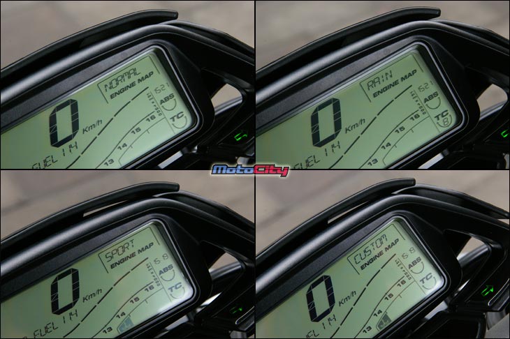 電控模式由右手把上的MAP按鍵進行選擇.儀表右上方顯示會有NORMAL.