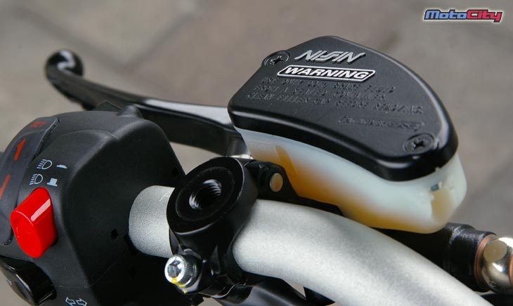 煞車總泵為NISSIN 家的產品.油缸以不易因煞車油產生質變或生鏽的塑膠油杯.