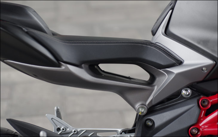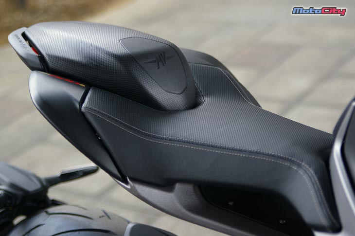 Brutale 800 座椅採前後分離式設計.後座前端部分巧妙可成為前座腰靠.