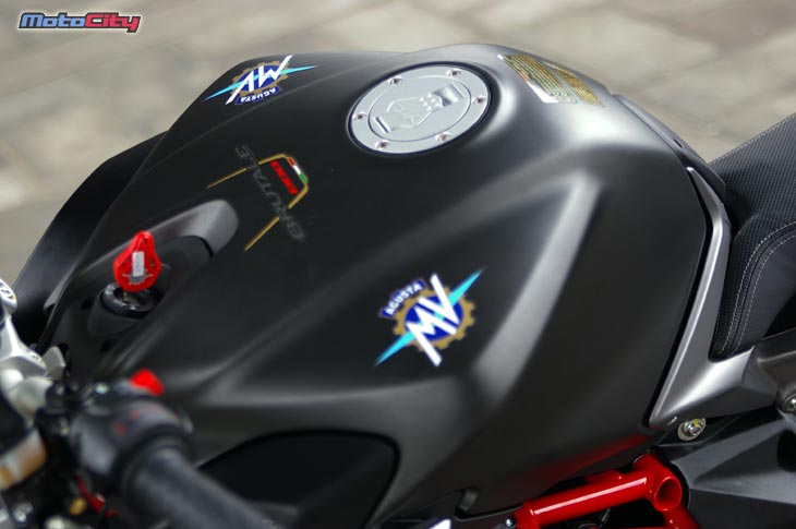 容量16.5公升的梯型油箱前方兩側無痕結合進氣孔設計.完全展現MV Agusta