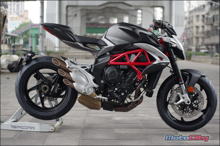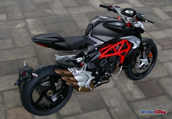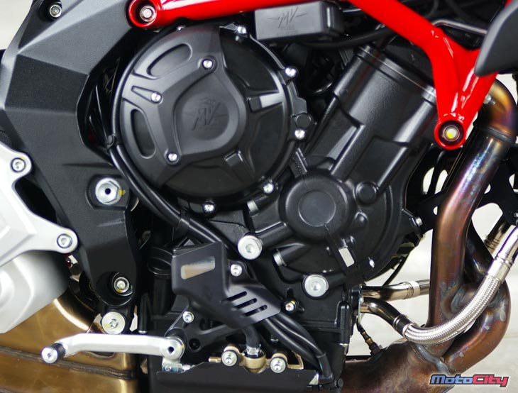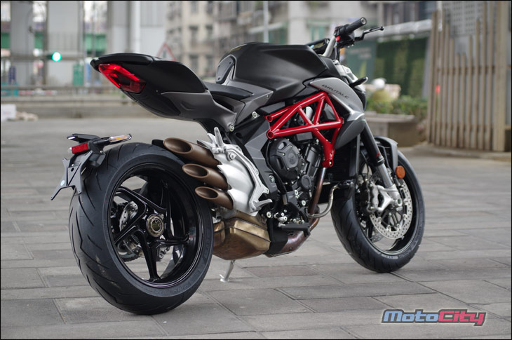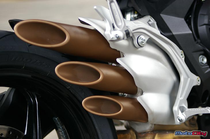 容積增加了3公斤.極具特色的三出排氣管尾段造型是MV Agusta 獨有的設計.