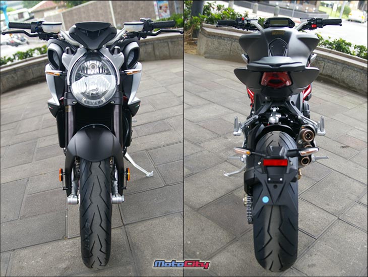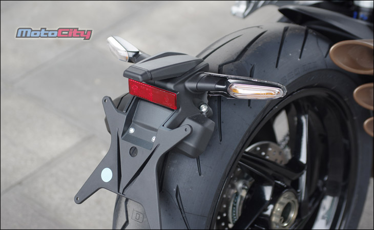 Brutale 800 後牌板配置於後輪位置.尾部左右方向指示燈也同樣配置於此.