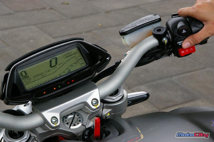 動力模式切換扭配置在右把手催油側位置.行進間切換也十分順手.