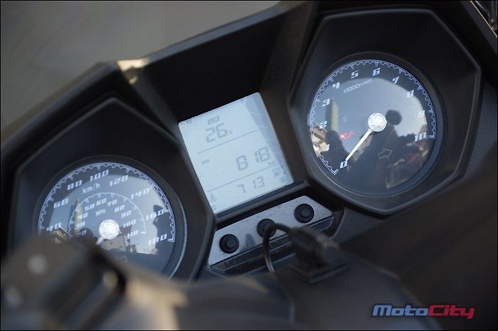 儀錶採指針液晶複合式設計.左右指針錶分別顯示時速.轉速.左右方向指示燈.