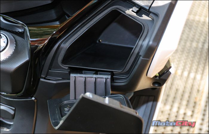 與雨衣之外.還可以放入一個公事包.另外手把兩側的手套箱空間的實用性也很高