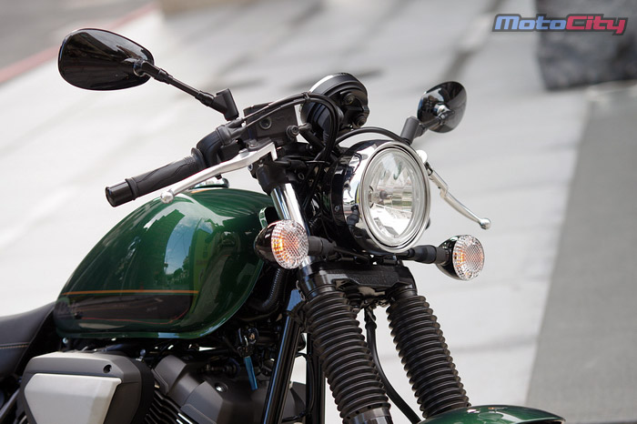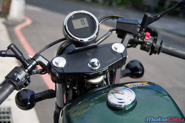 車頭換上了分離式低把.儀表版向上移置;前避震加入了復古的保護筒