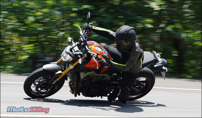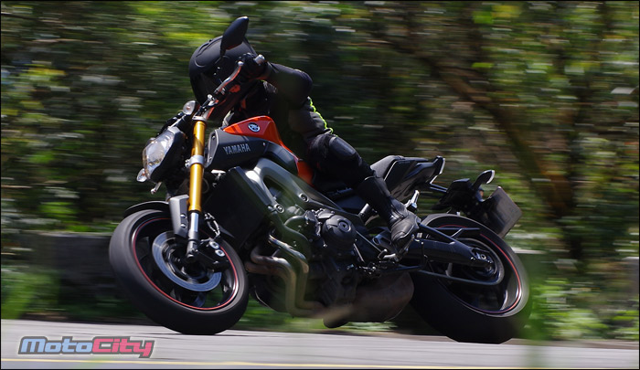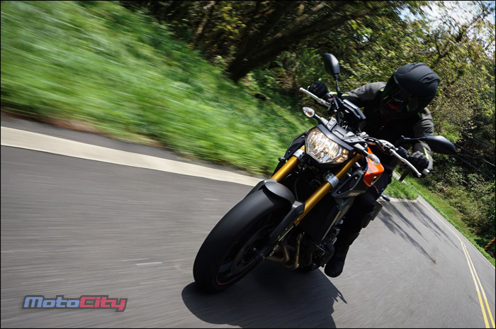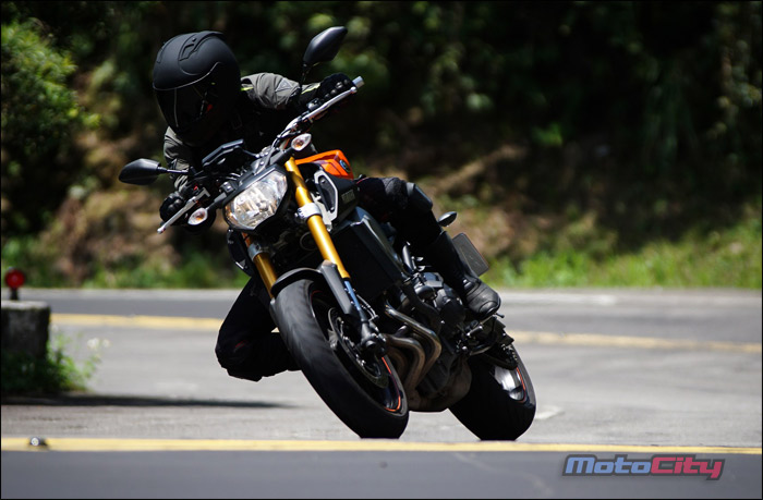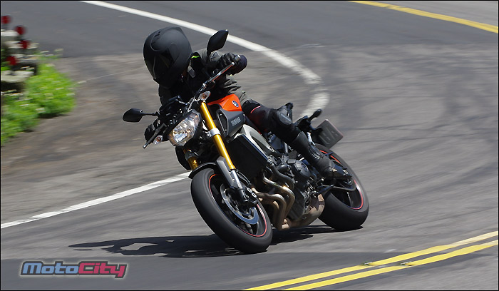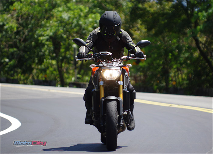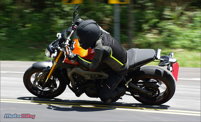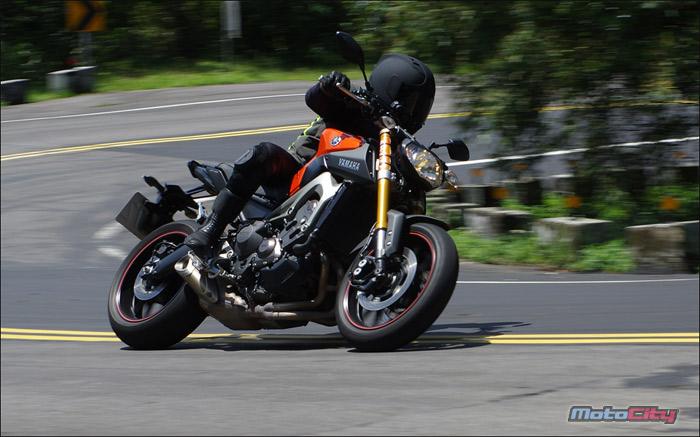 隨著身體重心的改變.MT-09非常輕巧且快適的在彎道中巡弋.享受到非常