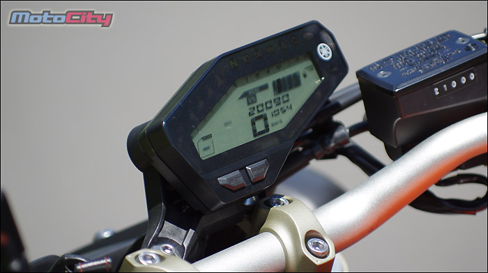打從起步開始.山葉車廠就不打算讓這台MT-09有任何柔順的感覺.因此