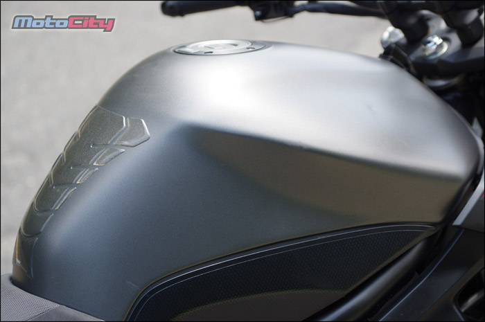 17.3公升大油箱容量媲美公升級.油箱靠近椅墊部分較為窄縮.有利於 騎士在騎乘時夾腳更為舒適.貼合