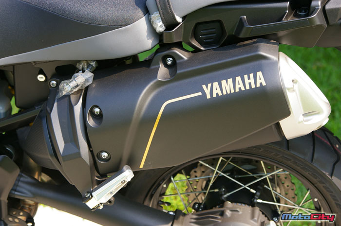 1200cc大排氣量XT1200Z排氣管出口設計較為斜下.可防止砂石噴入造成機件損壞