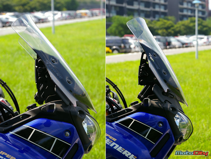 風鏡以螺絲固定採上下兩段式手動可調.依照騎士身高可自行調整.可確實 達到抗風壓及防砂塵的功能