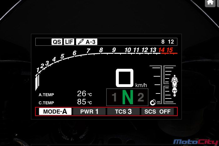 TCS:5段循跡控制可調 SCS:3段後輪滑動控制可調 QSS:2段快排換檔可調