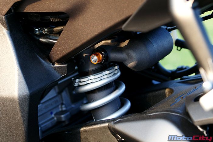 後避震同樣是與KYB合作開發.單槍多連桿設計.高低速可調