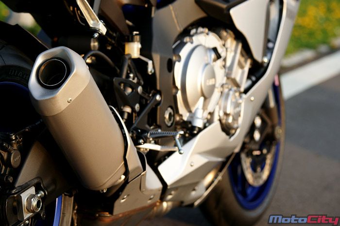 配合新的引擎.2015 R1也採用全新設計的4-1全段鈦合金排氣管 在動力性能與環保噪音間取得最理想的平衡