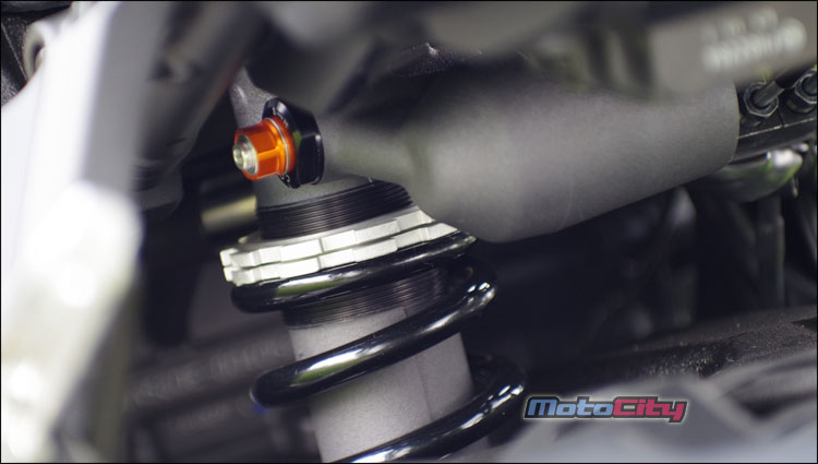 MT-10後懸吊同樣配置KYB單槍多連桿避震器.高低速可調