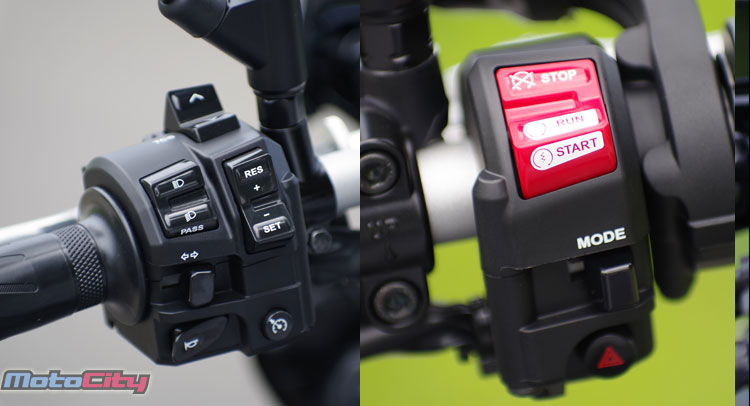 左邊手把開關配置有遠近燈切換鍵.左右方向燈.喇叭.TCS切換鍵.巡航定速控制開關.