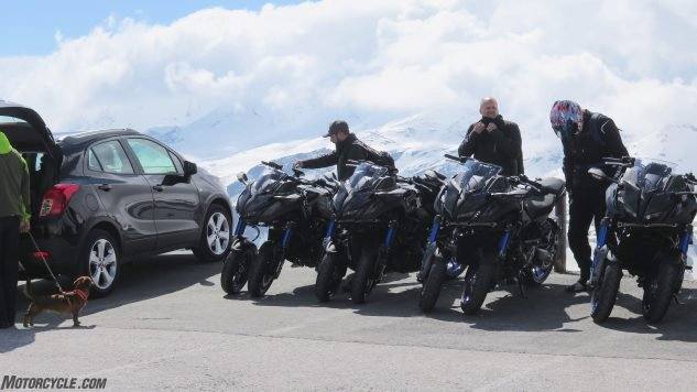 試乘展開之前Yamaha Europe把幾輛Niken一字排開,來來往往路過