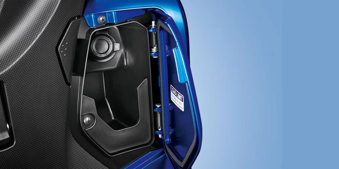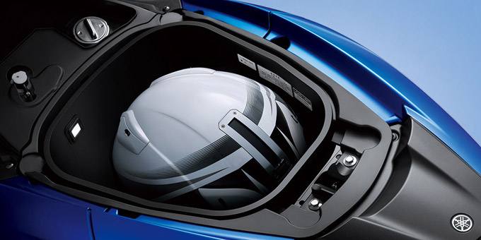 坐墊底下置物空間看似不大.但深度容納一頂全罩安全帽是可以的. 而TRICITY