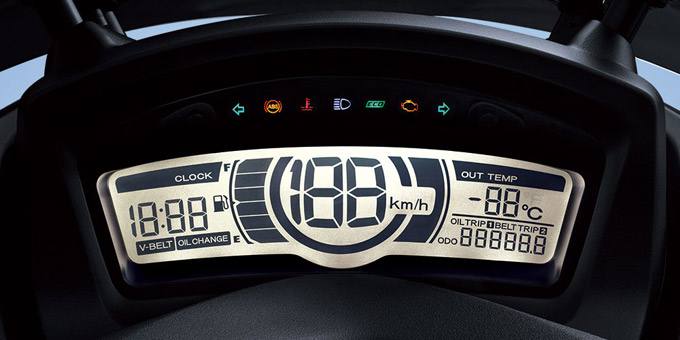 全液晶數位儀表顯示有時速.油量.時間.里程.室外溫度等資訊.