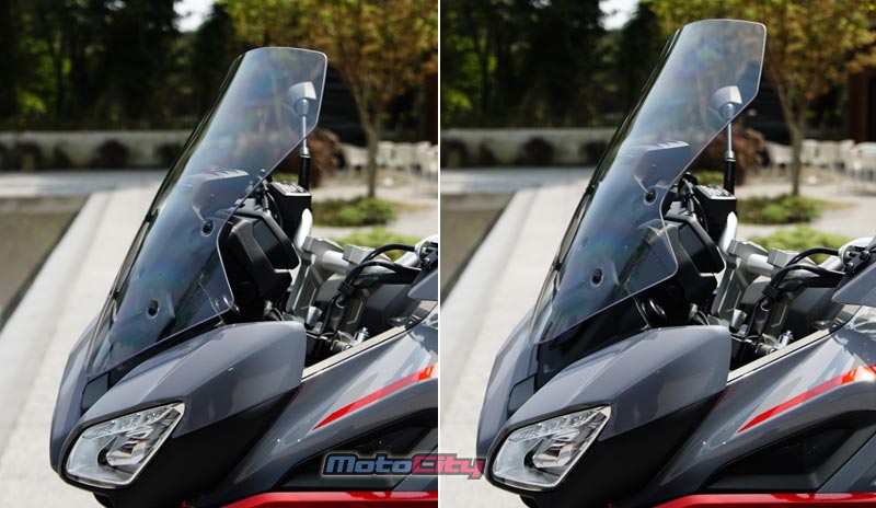 6.高低可調車頭檔風鏡.免工具.30mm調整範圍 7.握把加熱器與直覺且功能完整的巡航控制鍵