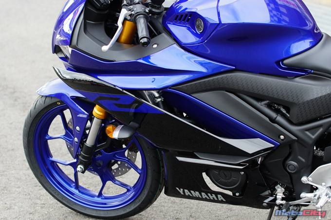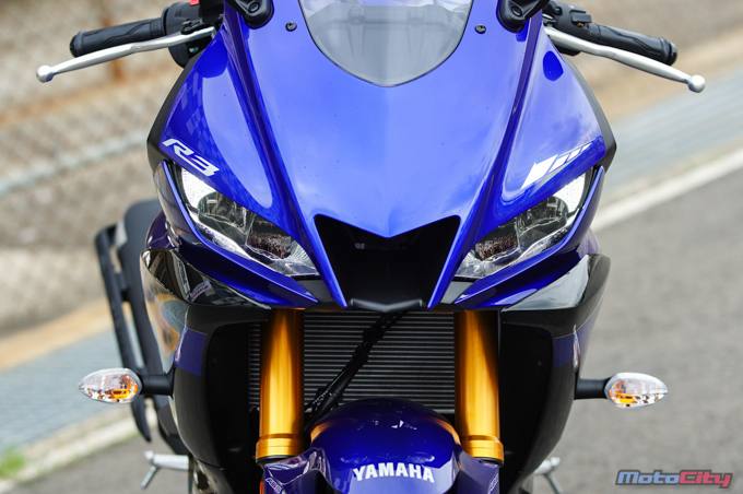 新款YZF-R3的頭罩有和M1一樣的M型中央進氣口.可導風至水冷排