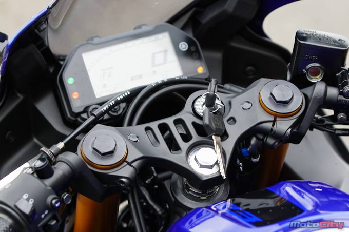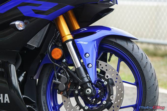 新款YZF-R3最醒目的改變就是換上了管徑37mm的黃金倒叉