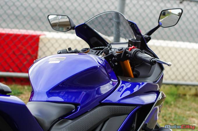 也讓新款YZF-R3更具跑格.此外.新的分離式把手的高度降低了22mm 使上半身的騎乘姿勢略為前傾.更適合做運動化的騎乘動作