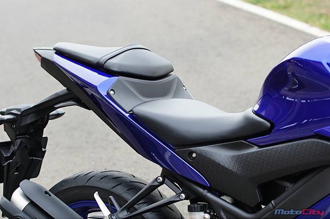 新款YZF-R3的車尾造型和座高以及腳踏板位置皆與前代R3相同.座高部份為780mm