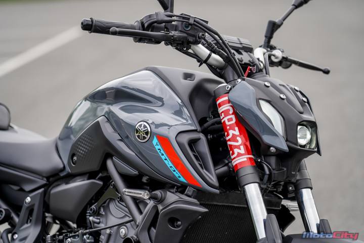 視覺DNA造型.並有可加裝風鏡的擴充設計.油箱前端有著進氣孔的造型 並鑲有YAMAHA廠徽和新MT代表視覺配色