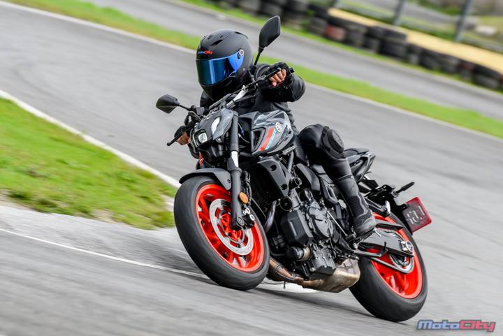 MT-07在更極端的連續退檔重煞入彎都能保持車身安定.達到出彎點大補油 車輛可以瞬間將大扭力釋放出來加速.在原廠後避震設定的段數下.車輛