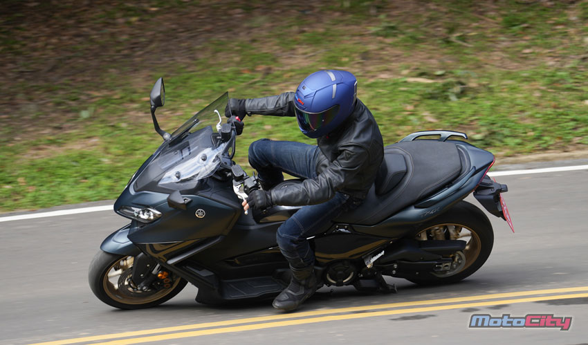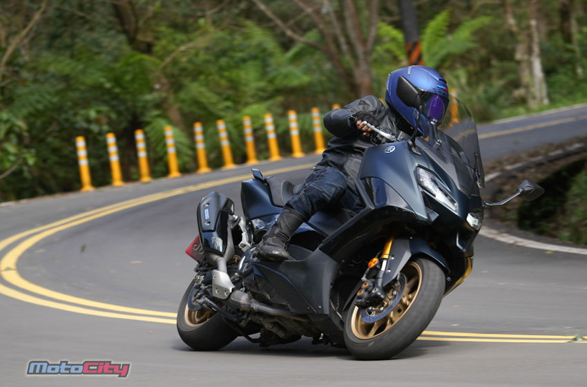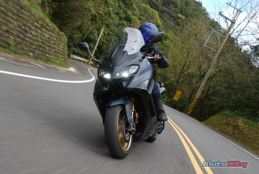 在山道駕馭TMax560.