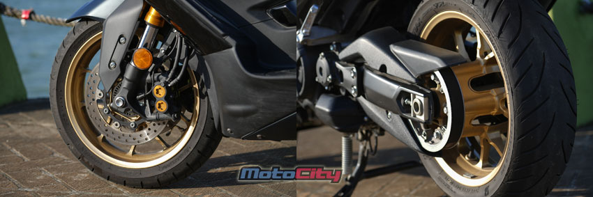 在底盤部分.第八代TMax560採用前後15吋輪框