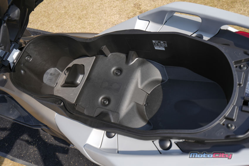 另外13.2L的坐墊下方置物空間可容納兩頂全罩安全帽