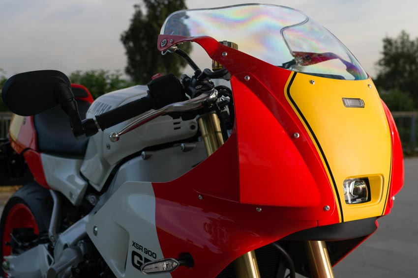 以XSR900 DB40原型車展出亮相.不過換上Legend Red塗裝的XSR900 GP更加漂亮.