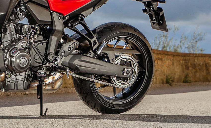 標配的米其林Pilot Road 6 GT輪胎可提供長途騎旅所需的耐久里程與濕抓地力.